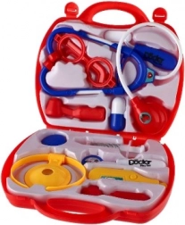 Stetoskop, termometer, sprøjte og andre farverige redskaber inspirerer til realistisk og sjov leg, der udvikler fantasi og kommunikation.