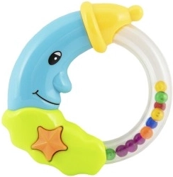 Den søde rangle i form af en måne glæder enhver baby lige fra fødslen. Takket være den lette plastkonstruktion er den nem at holde, og ved bevægelse udsender den behagelige lyde, som understøtter sansning og beroliger. Let plast, behagelig lyd, to farvevarianter, egnet fra 0 måneder.
