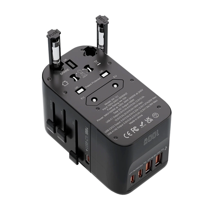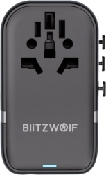 BLITZWOLF BW-TA2 er en universal 5-i-1 rejseadapter designet til bekvem og sikker strømforsyning over hele verden. Takket være GaN-teknologi leverer den højere effektivitet, lavere varmeudvikling og stabil effekt op til 100 W, så du pålideligt kan oplade krævende enheder som laptops, tablets og powerbanks.
