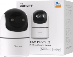 Nyd klar og jævn overvågning af hjemmet med Sonoff CAM-PT2. Den tilbyder opløsning i Full HD 1080p (blænde F2.0) og brede billeder takket være panoramisk 360° dækning – rotation 340° horisontalt og 180° vertikalt uden blinde vinkler. 940 nm nattevision er diskret (usynlig for øjet), og du kan desuden skifte til farve-nattetilstand.