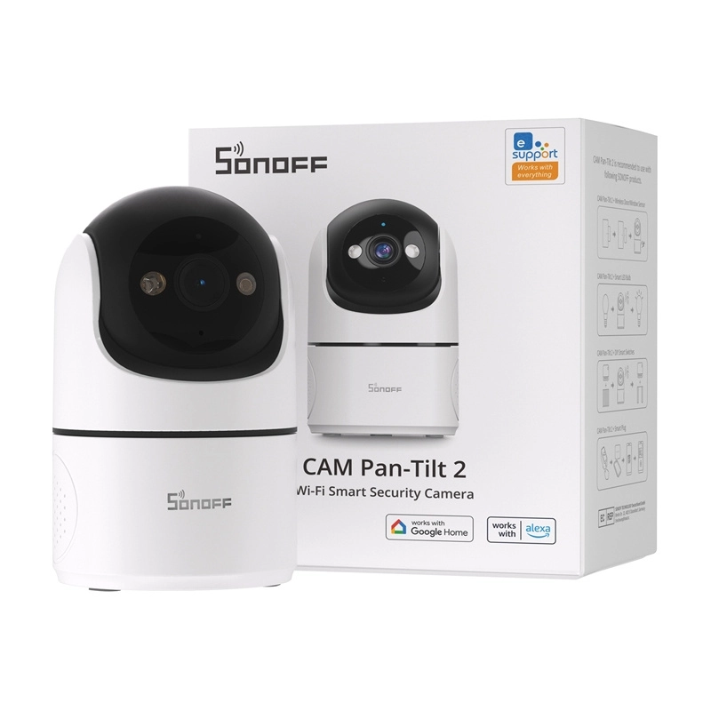 Betjeningen er nem via Sonoff-appen, som understøtter Amazon Alexa og Google Home for hurtig stemmevisning af live-feed. Stabil forbindelse sikres af Wi‑Fi 2,4 GHz og moderne komprimering H.264 for databesparelse.