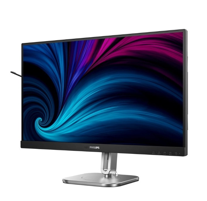 Det ergonomiske stativ med pivot (lodret rotation), tilt og højdejustering (afhængigt af variant) øger komforten ved længere tids arbejde. Tynde kanter og et rent design passer i både kontor og hjemmearbejdsplads.