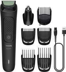 Oplev en pålidelig trimmer til komplet styling af skæg og hår. Med 7 praktiske tilbehør former du let konturer, korter længden og fintrimmer detaljer med maksimal præcision. Selvslibende stålblade forbliver skarpe i lang tid, mens afrundede spidser er skånsomme mod huden.