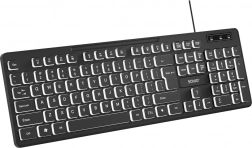Det minimalistiske, slanke kabinet passer nemt under en skærm eller på bordets udtrækshylde. Kabel på 1,4 m gør det lettere at føre kabler pænt og holde orden på arbejdspladsen. LED-baggrundsbelysning forbedrer læsbarheden af taster i dæmpet lys og reducerer slåfejl.