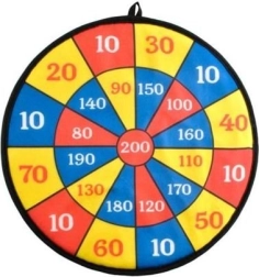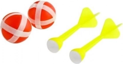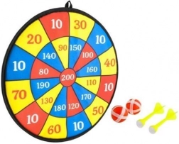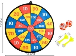 Klassisk dartskive – med bolde og pile med velcro. Det er det ideelle legetøj, som træner præcision og øje-hånd-koordination. Afstanden til skiven kan gradvist øges, hvilket øger spillets sværhedsgrad. Skiven har en overflade belagt med fibret stof, som boldene med fine kroge nemt hæfter på. Dette velcro-dartspil er fantastisk underholdning for både små og store.