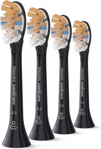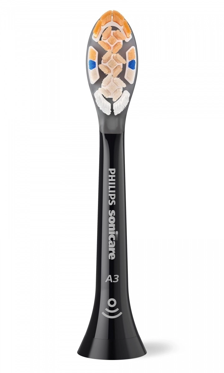 Sonicare A3 All‑in‑One‑hoveder kombinerer avanceret sonisk teknologi og gennemtænkt fiberform for dybderengøring selv på svært tilgængelige steder. Trekantede og flerfarvede børstezoner øger kontaktfladen og fjerner misfarvninger og belægninger mere effektivt, mens ekstra lange sidefibre plejer tandkødslinjen.
