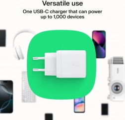 Den ene USB‑C‑port oplader pålideligt telefoner, tablets og hovedtelefoner. Færre opladere, mere bekvemmelighed derhjemme og på farten.