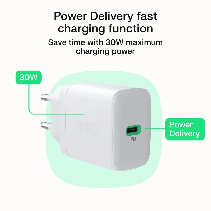 Udnyt hurtig opladning med USB‑C Power Delivery 30 W og fyld energi på telefonen op til 80 % på omtrent 40 minutter. Den enkelte USB‑C‑port kan forsyne et bredt udvalg af moderne enheder, herunder Apple iPhone, Samsung Galaxy og Google Pixel samt trådløse hovedtelefoner. Det kompakte kabinet med afrundede kanter er ideelt til stikkontakten både hjemme og på rejser.