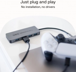 - 4× USB‑A 3.0 fra én USB‑C-port