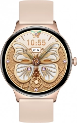 Skærmen med opløsning 466 × 466 byder på levende farver, fremragende kontrast og rigtig god læsbarhed. En tykkelse på kun 7,9 mm og det elegante guldlook fuldender ethvert outfit.