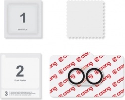 9H hårdhed i kombination med en ikke-splintrende sammensætning hjælper med at forhindre revner og smuldrende kanter. Særlige optiske ringe omkring objektiverne minimerer refleksioner og bevarer høj billedkvalitet. Takket være gennemsigtigt klæbemiddel og det medfølgende tilbehør kan glasset monteres hurtigt og rent derhjemme.
