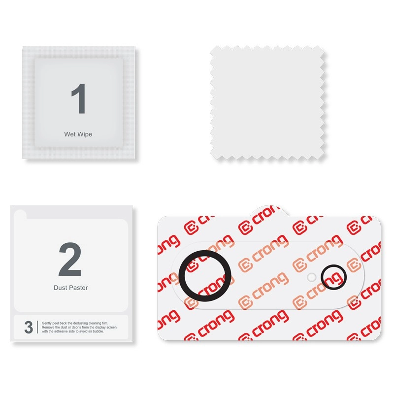 Takket være det gennemsigtige klæbemiddel er installationen hurtig og boblefri. Særlige ringe omkring linserne minimerer reflekser og hjælper med at bevare billedkvaliteten. Pakken indeholder komplet tilbehør til forberedelse af telefonen og leveres i en miljøvenlig premium-æske.