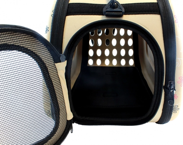 Højkvalitets transporttaske til små kæledyr. Den er ideel til transport af mindre dyr over enhver afstand. Den ekstremt komfortable konstruktion sikrer bekvemmelighed for både os og dyret. Solidt materiale, som bæretasken er lavet af, samt et solidt håndtag og en justerbar skulderrem, sikrer lang og problemfri brug af produktet. Tasken er luftig og sikker for vores kæledyr takket være ventilationssystemet. Den dobbelt lynlås på begge sider af transportkassen giver også komfortabel brug.