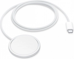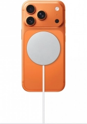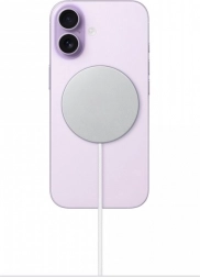 Nyd bekvemmeligheden ved trådløs opladning med den magnetiske MagSafe-oplader. Stærke magneter sikrer præcis fastgørelse på bagsiden af en kompatibel iPhone og stabil strøm uden uønsket bevægelse. Den flade, tynde puck med integreret kabel passer både på skrivebordet og natbordet.