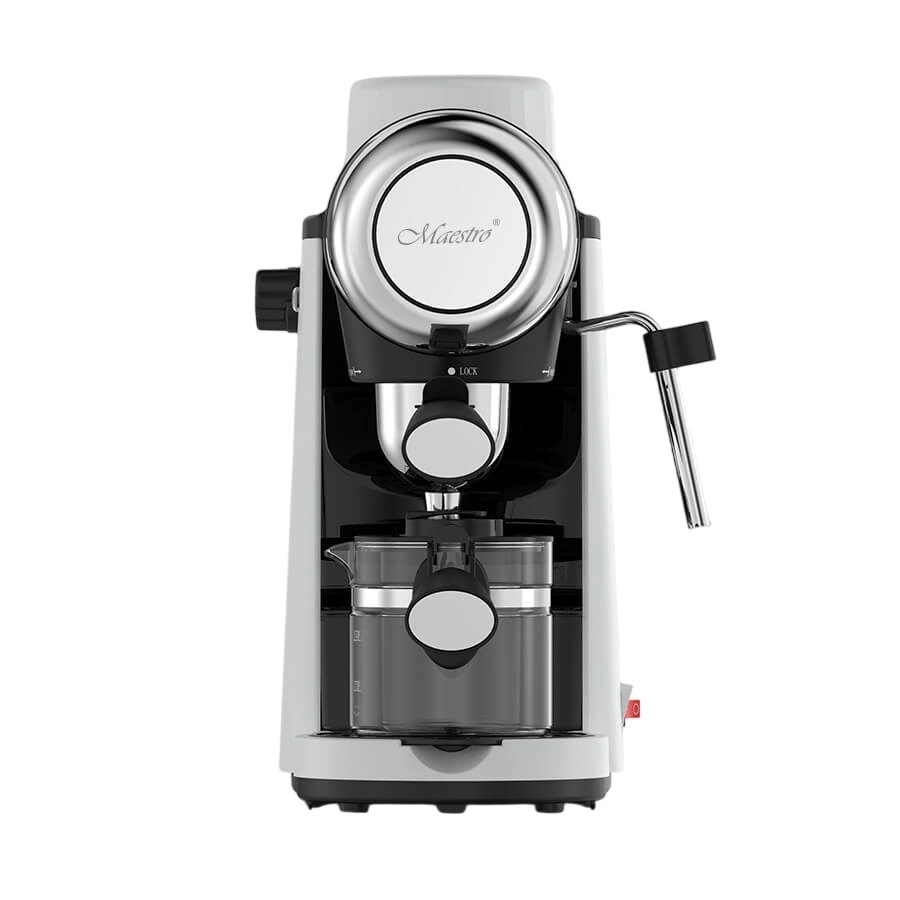 Nyd den intense smag af hjemmelavet espresso med den kompakte espressomaskine MAESTRO MR-410. Med 3,5 bar og 800 W opnår du stabil ekstraktion for fuld aroma og cremet crema. Den praktiske glaskande gør det muligt at tilberede op til 4 kopper kaffe på én gang, ideel til familien og besøgende.