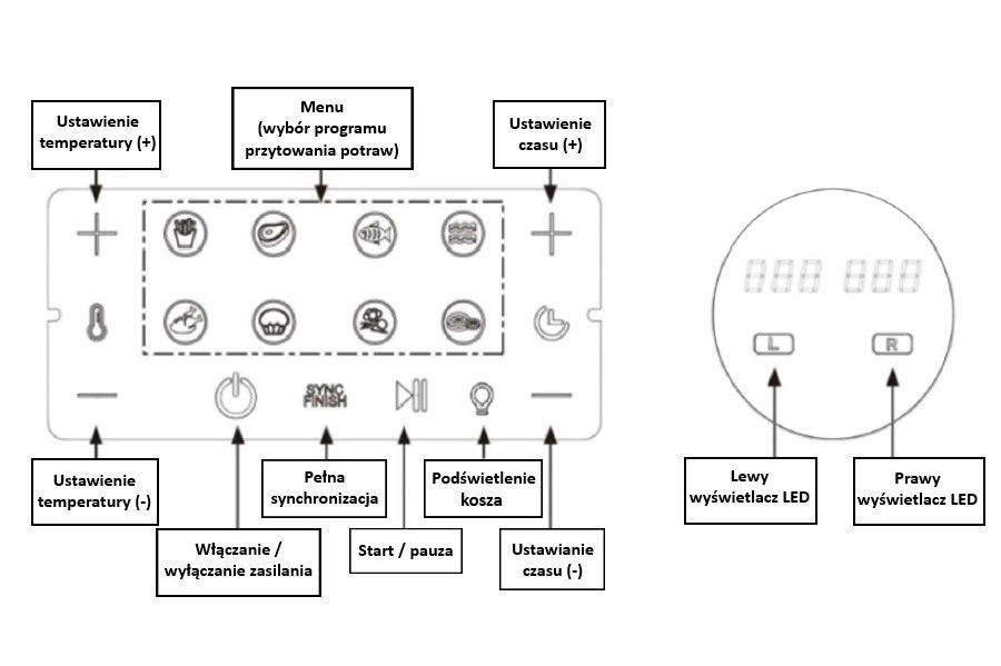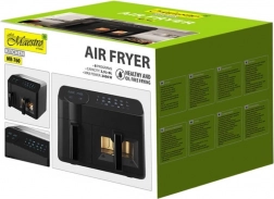 Maestro varmluftsfriture bringer en moderne måde at lave mad på uden tilsat fedt. To separate kurve med kapacitet på 3,5 l og 6 l gør det muligt at tilberede forskellige retter samtidig – ideelt for familier og krævende brugere. Den stærke effekt på 2400 W sikrer hurtig opvarmning og jævn cirkulation af varm luft for sprøde resultater.
