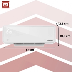Komfortabel og elegant løsning til hjem, kontor og butikker. Lufttæppet KAMINER ZELVION med frontglas sikrer jævn varmefordeling takket være bredvinklet, oscillerende spjæld og to effektniveauer 1000 / 2000 W. LED‑display og intuitiv ét‑knapsbetjening gør daglig brug nem, mens IP23‑klassificering beskytter enheden mod fugt og støv.