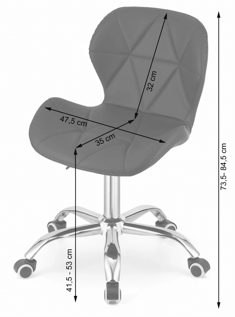 Takket være trinløs højdejustering (41,5–53 cm) kan du nemt tilpasse stolen til din krop og bordhøjde. Den forkromede femgrenet base sikrer stabilitet, og gummihjul giver jævn bevægelse uden at ridse gulvet. Den robuste konstruktion med bæreevne på 110 kg garanterer lang holdbarhed.