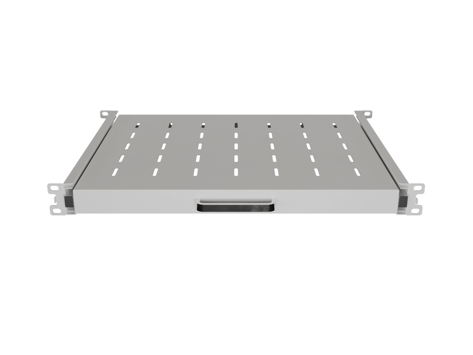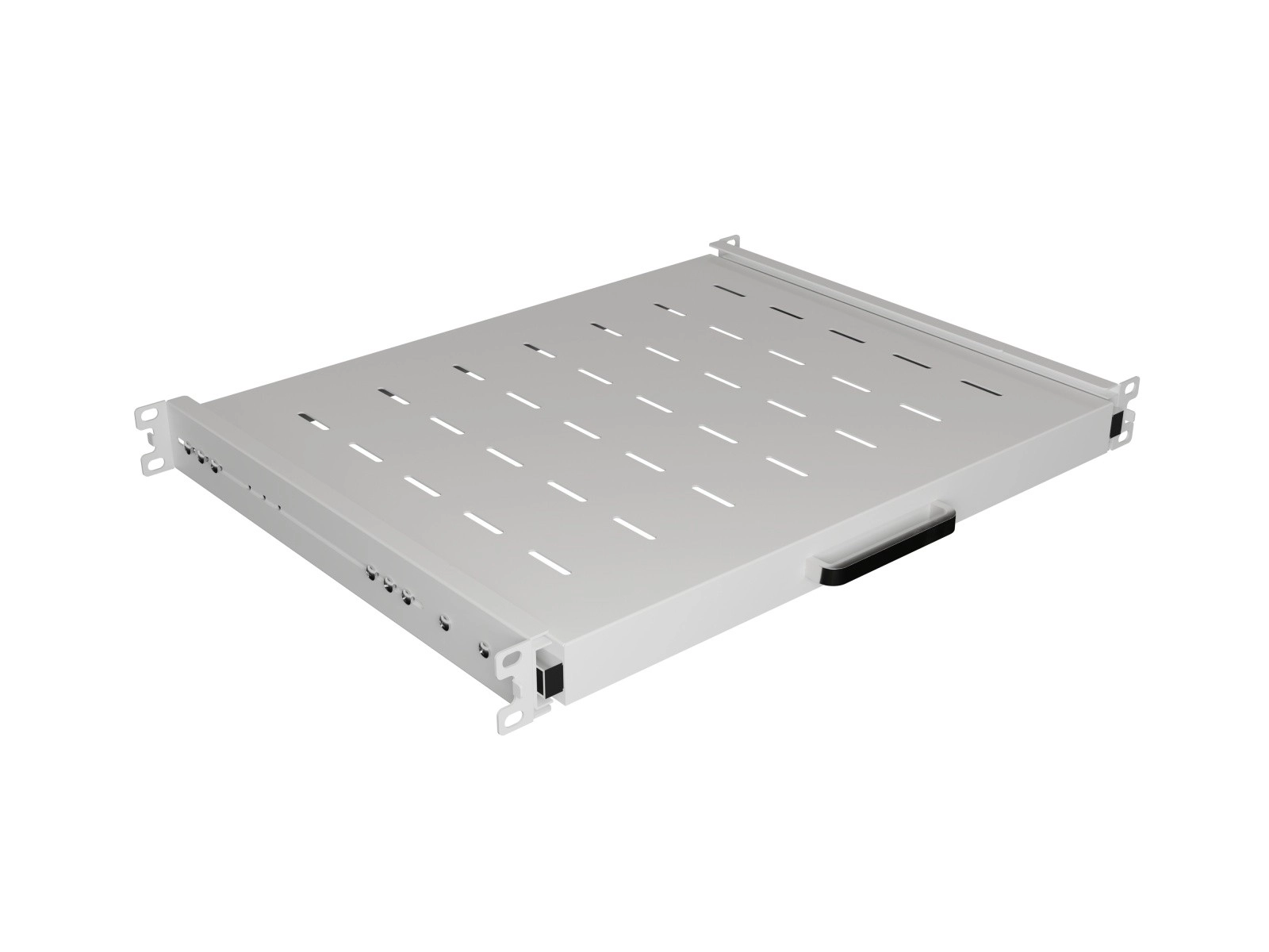 Den perforerede overflade understøtter optimal luftgennemstrømning og varmespredning, mens det praktiske forreste greb gør håndteringen nem. Firepunktsmontering sikrer stabilitet og pålidelighed i hele opbygningen. Justerbare monteringsbeslag muliggør installation i skabe med forskellig dybde, så løsningen er universel og let at tilpasse.