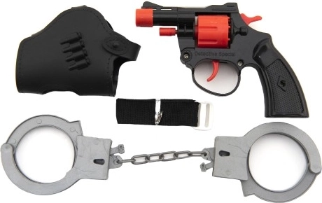 Denne kapselpistol til børn giver masser af sikker underholdning og stimulerer fantasien i lege som politibetjent. Sættet indeholder et praktisk bæltehylster og plastikhåndjern, som gør legeoplevelsen endnu mere autentisk. Den kompakte længde på 13 cm gør pistolen let at holde – også for mindre børn.