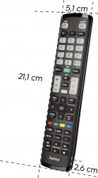 Til hurtig navigation fungerer den smarte streamingknap med øjeblikkelig adgang til app-menuen. Selvlysende (luminescerende) knapper for tal og hovedfunktioner sikrer sikker betjening selv i et dunkelt rum uden at tænde lyset. Easy Mode kan begrænse avancerede funktioner og forhindre uønskede ændringer i indstillingerne – ideelt til hoteller eller for seniorer.