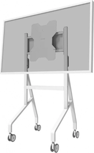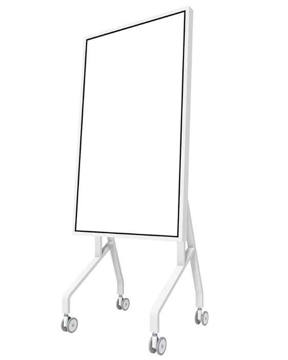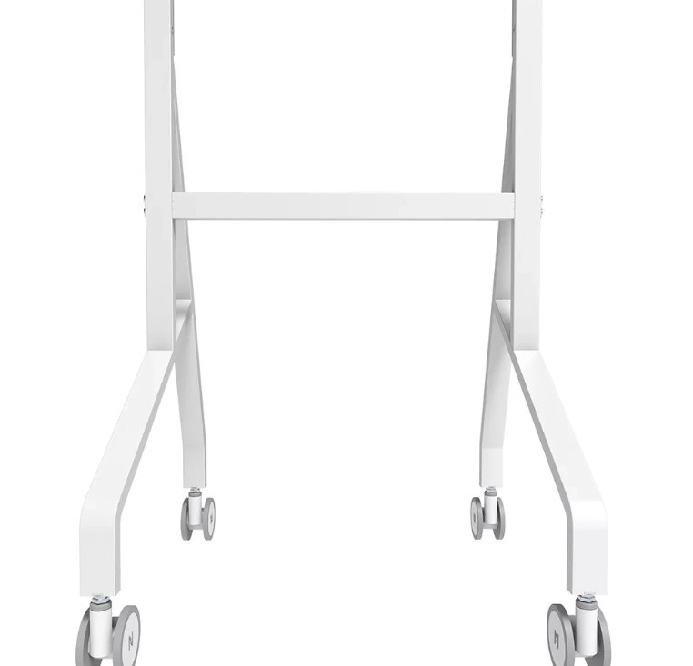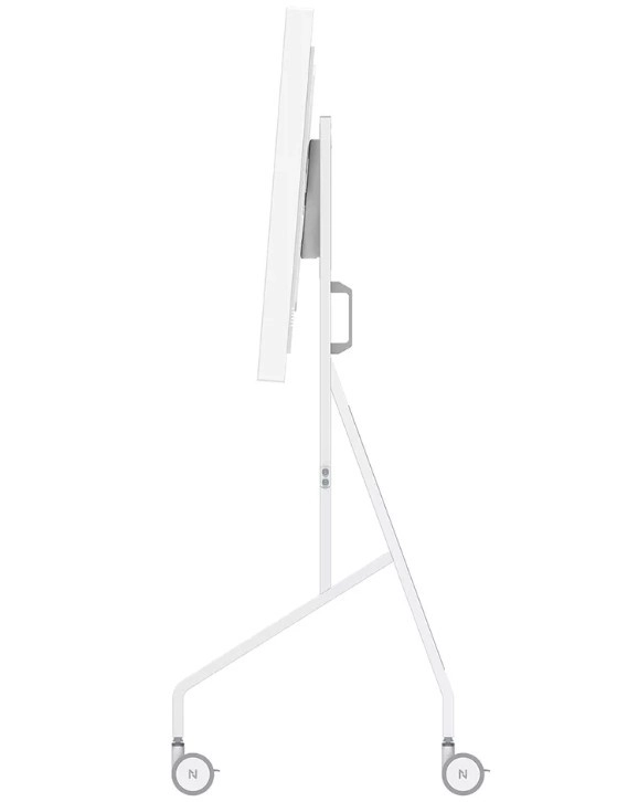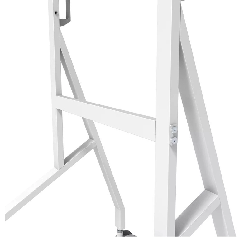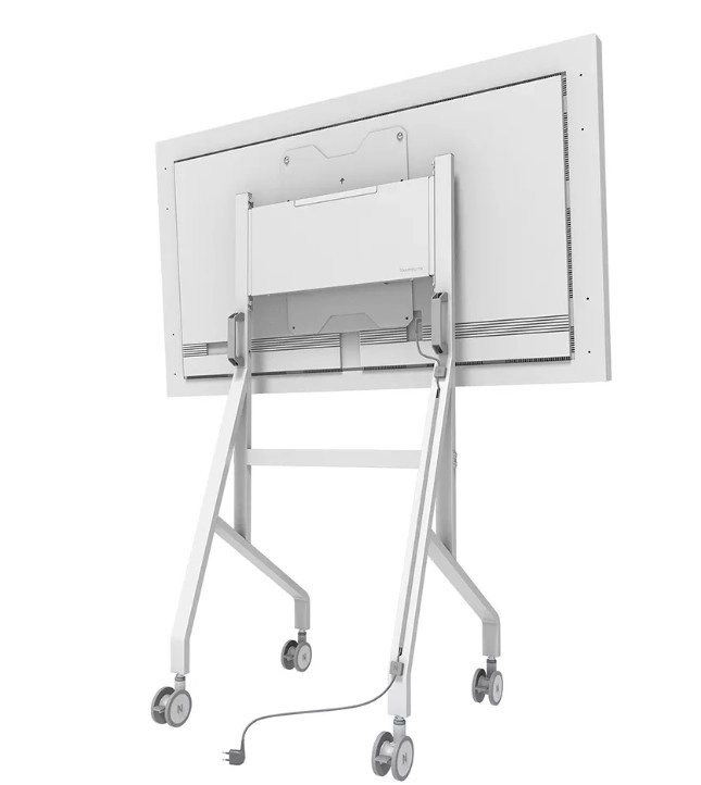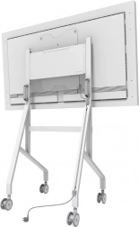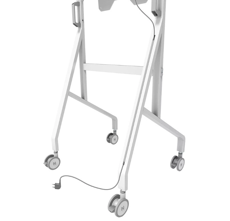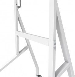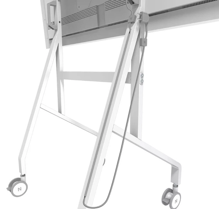 Den stabile metalkonstruktion med rent hvid finish komplementerer Samsung Flip og gør ordentlig kabelstyring nem. Store drejelige hjul med lås (100 mm) og ergonomiske håndtag sikrer smidig flytning mellem rum. Takket være hurtig installation på ca. 10 minutter er samlingen enkel og hurtig.