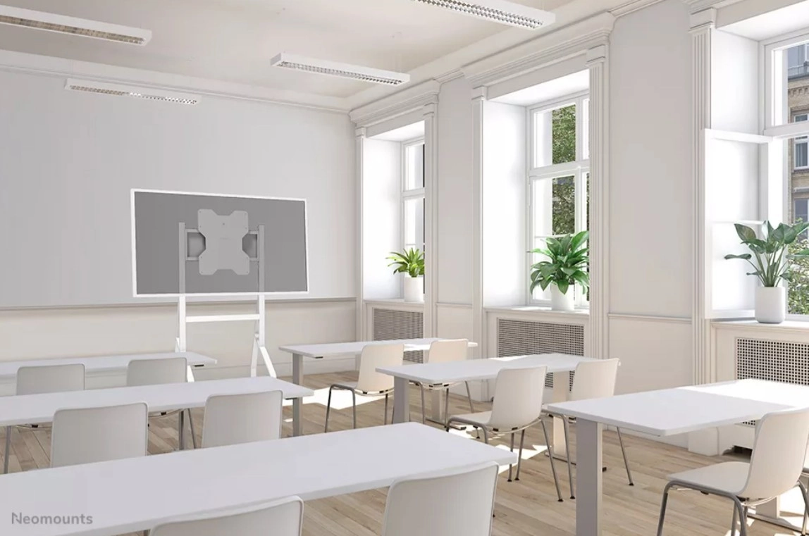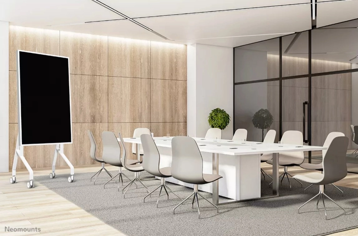 Den mobile stander Neomounts MOVE Go Flip er skræddersyet til SAMSUNG FLIP 55″ og 65″. Med den glatte 90° rotation skifter du nemt mellem liggende og stående – ideelt til brainstorming, undervisning og hybride møder. To manuelt justerbare højdepositioner hjælper dig med at tilpasse skærmen til omgivelser og brugerhøjde.