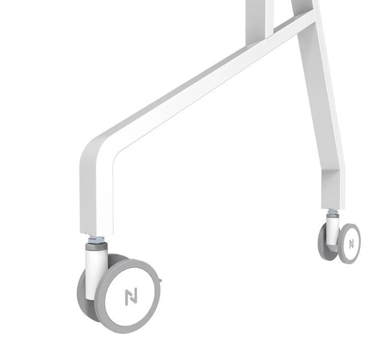 Fire robuste 100 mm hjul med bremse og integrerede håndtag giver sikker og komfortabel flytning mellem klasselokaler eller møderum.