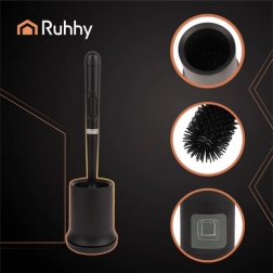 Leder du efter en hygiejnisk og nem løsning til den daglige toiletvedligeholdelse? RUHHY WC-børsten kombinerer silikone (TPR) børster, der ikke ridser overflader, med et halvrundt hoved for perfekt rækkevidde og effektiv fjernelse af snavs. Det ventilerede etui med aftagelig drypbakke reducerer fugt og ubehagelige lugte.