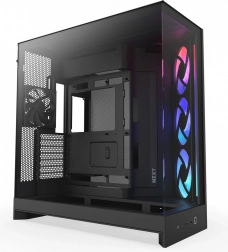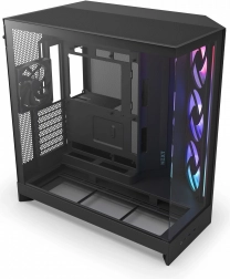 NZXT H9 Flow RGB er et rummeligt mid‑tower ATX kabinet til kraftige builds, som kombinerer førsteklasses køling, panoramisk hærdet glas og en to-kammer konstruktion for perfekt kabelhåndtering. Det tilbyder understøttelse af op til 10 blæsere, kompatibilitet med radiatorer op til 420 mm og er klar til Back‑Connect bundkort (ASUS BTF, MSI Project Zero).