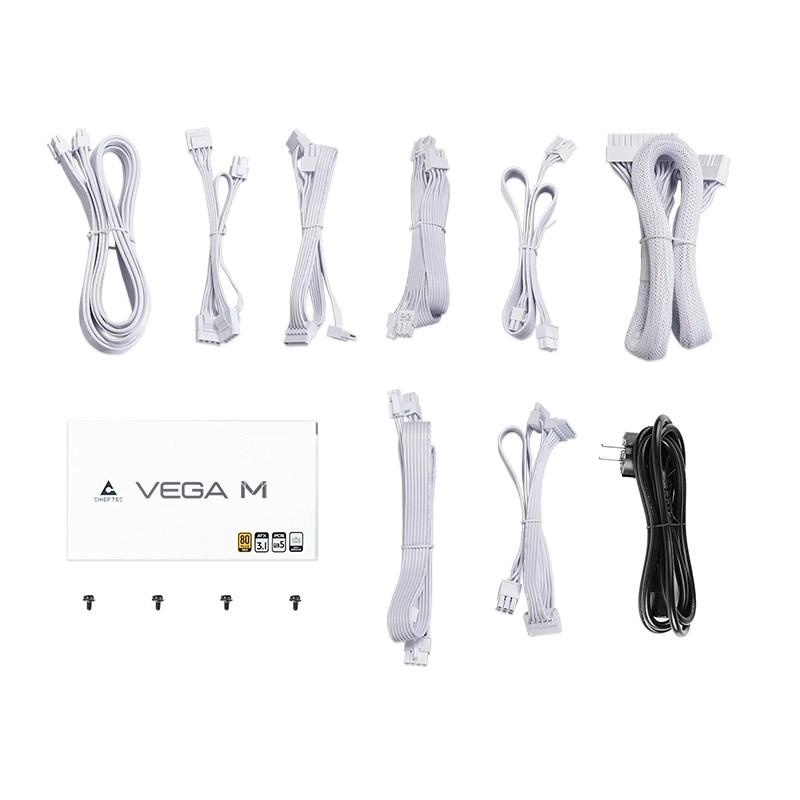 Chieftec Vega M 850W er en pålidelig strømforsyning til krævende gamere og creators, der opfylder den nyeste standard ATX 12V 3.1 og understøtter PCIe Gen5 grafikkort. Takket være den høje effektivitet 80 PLUS Gold tilbyder den lavere tab, mindre spildvarme og stabil drift for hele systemet.