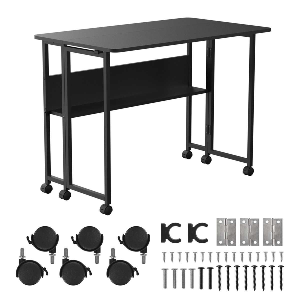 Den todelte bordplade gør det muligt at reducere bordets dybde fra 58 cm til ca. 22,5 cm. Ideelt til meget små rum eller midlertidige arbejdspladser.