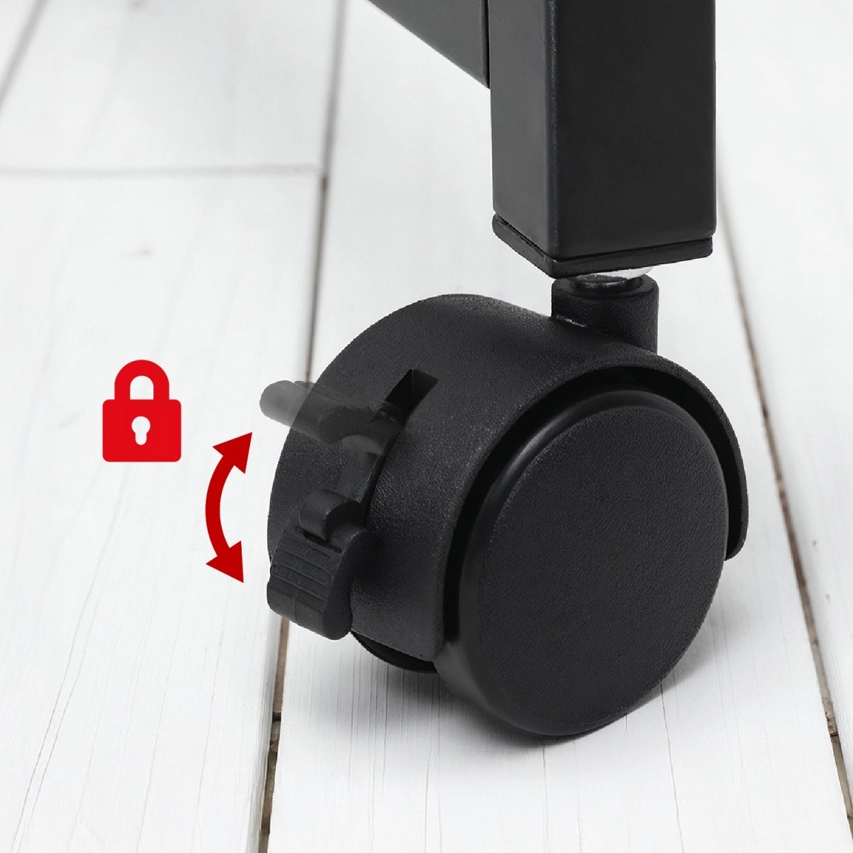 Integrerede hjul gør det let at flytte bordet rundt i hjemmet eller på kontoret. Du kan hurtigt tilpasse arbejdszonen efter behov.