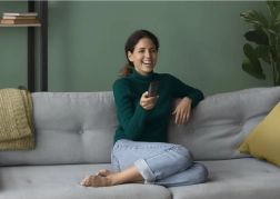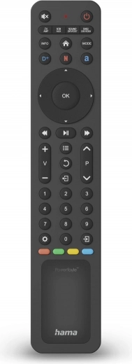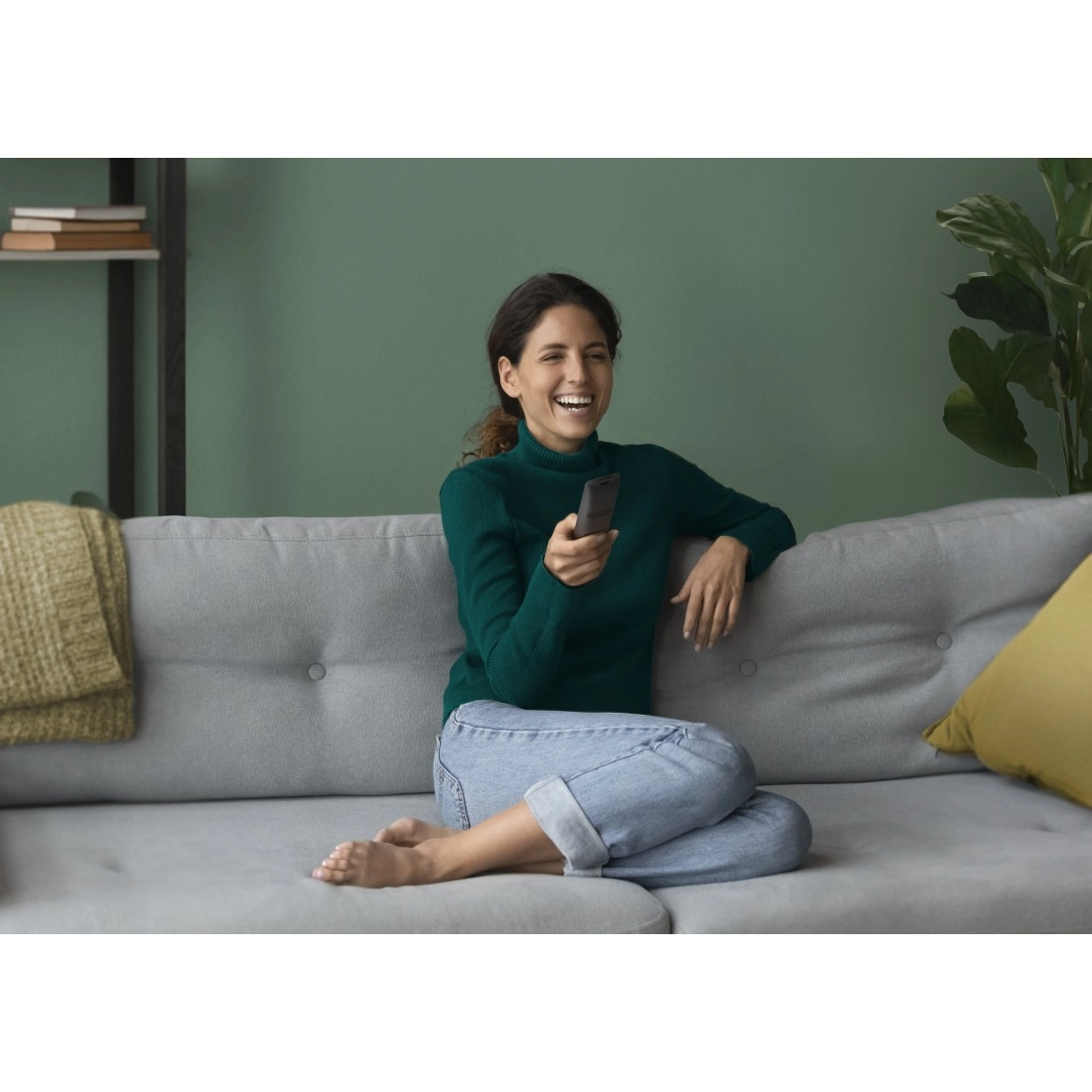 Til øjeblikkelig afspilning findes hurtigadgangsknapper til tjenester som NETFLIX, AMAZON PRIME VIDEO og DISNEY+. Det bæredygtige design med mere end 20 % genanvendte materialer og ergonomisk form sikrer behageligt greb og ansvarlig drift uden engangsbatterier.