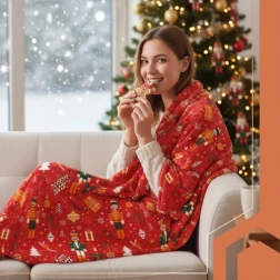 Tæppet har universel størrelse 150 × 200 cm, så det passer til sofa, seng og lænestol. Brug det som tæppe eller dekorativt overkast. Når det foldes sammen, fylder det minimalt, og takket være satinbåndet er det også klar som en fantastisk julegave.