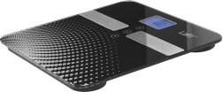 Takket være bioimpedansanalyse viser den udover vægt også et estimat af kropsfedt i procent, kropsvand, muskel- og knoglemasse samt kaloriebehov. Automatisk tænd/sluk, automatisk nulstilling og valg af enheder kg / lb / st giver bekvem drift for hele familien.