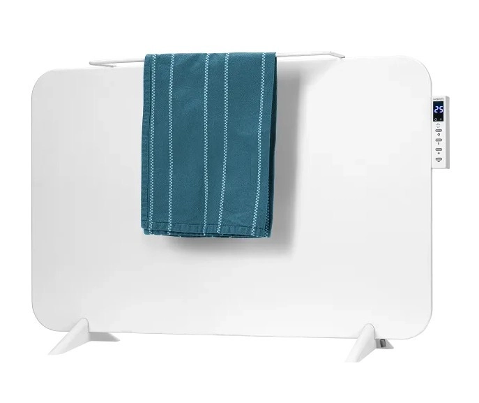 Varmeren kan bruges som fritstående på stabile fødder eller vægmonteres. Den praktiske stål-håndklædeholder accelererer tørringen uden ekstra apparater. Den indbyggede digitale termostat, timer og smart styring via Tuya gør det muligt at planlægge opvarmning, overvåge temperaturen og optimere forbruget.