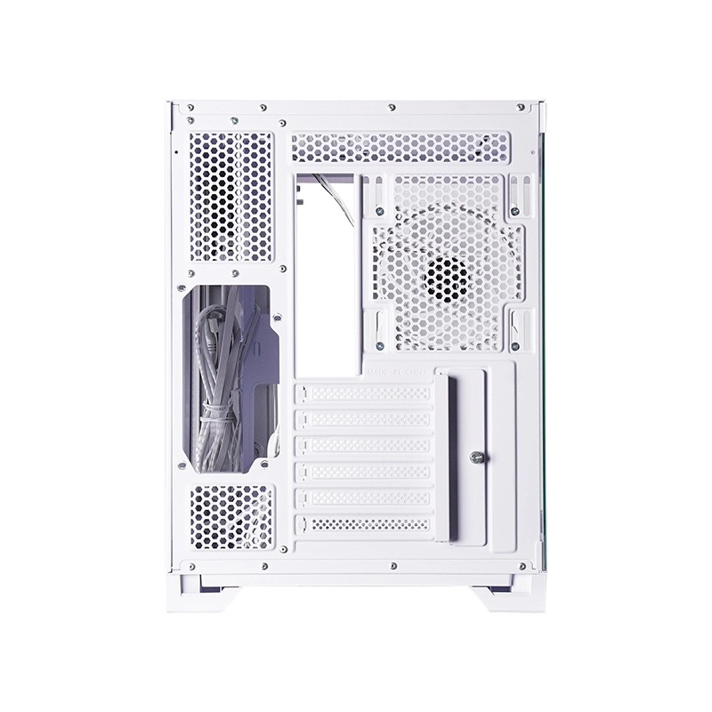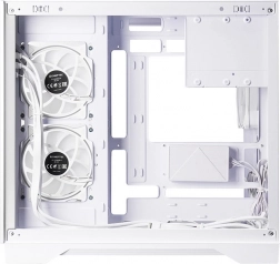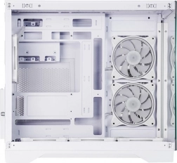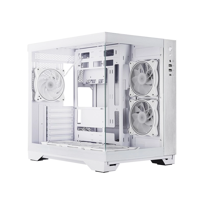 For- og sidepanel i hærdet glas fremhæver komponenterne og ARGB-belysningen. Det todelte kammerlayout skjuler kablerne og forbedrer luftgennemstrømningen.