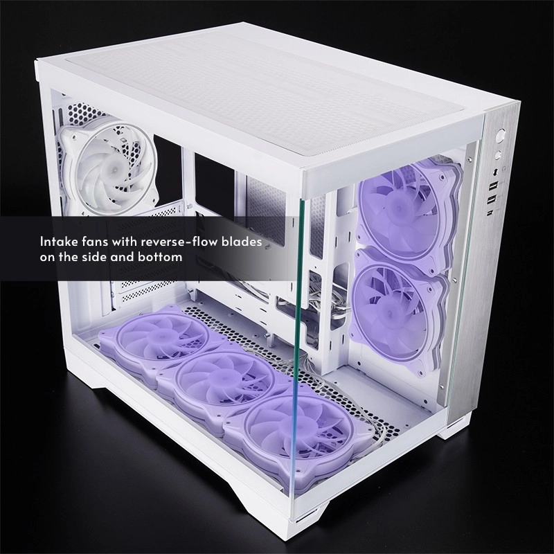 - 6× 120 mm ARGB blæsere fra fabrikken – fremragende airflow og iøjnefaldende belysning.