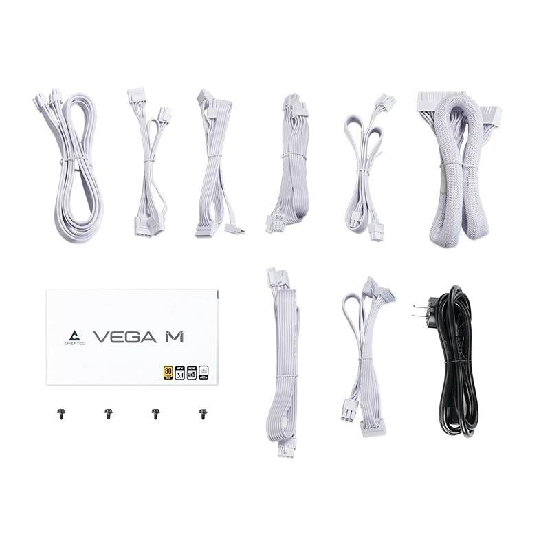 CHIEFTEC VEGA M 1000W er en moderne PC-strømforsyning designet til krævende gamere og skabere. Takket være LLC Half-Bridge med DC-to-DC leverer den stabil strøm selv til kraftige systemer, mens 80+ Gold-effektivitet reducerer forbrug og temperaturer. Det fuldt modulære design med lange kabler sikrer pæn kabelstyring selv i store kabinetter.