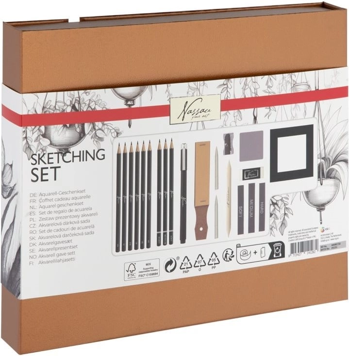 NASSAU skitseringssæt 22 stk. er en komplet billedkunstløsning til hjemmearbejde, undervisning og atelierbrug. Det giver et bredt udvalg af hårdheder i grafitblyanter samt et udvalg af kul til plastisk skygge, bløde overgange og præcise linjer. Sættet understøtter udviklingen af kreativitet, finmotorik og tegneteknik.