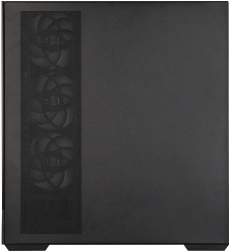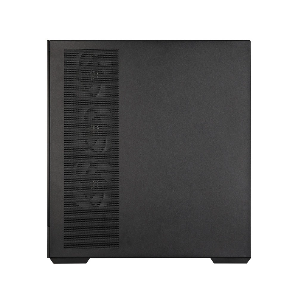 Kabinettet er optimeret til maksimalt luftflow takket være sideindtag og smart placering af blæsere. AF120-blæsere minimerer vibrationer, reducerer aerodynamisk støj og øger effektiviteten af luftstrømmen. Den aftagelige sidepanel gør montering og vedligehold let, mens magnetiske støvfiltre i top og bund begrænser støvophobning og understøtter hurtig varmeafledning.