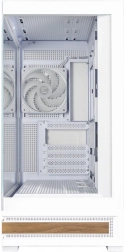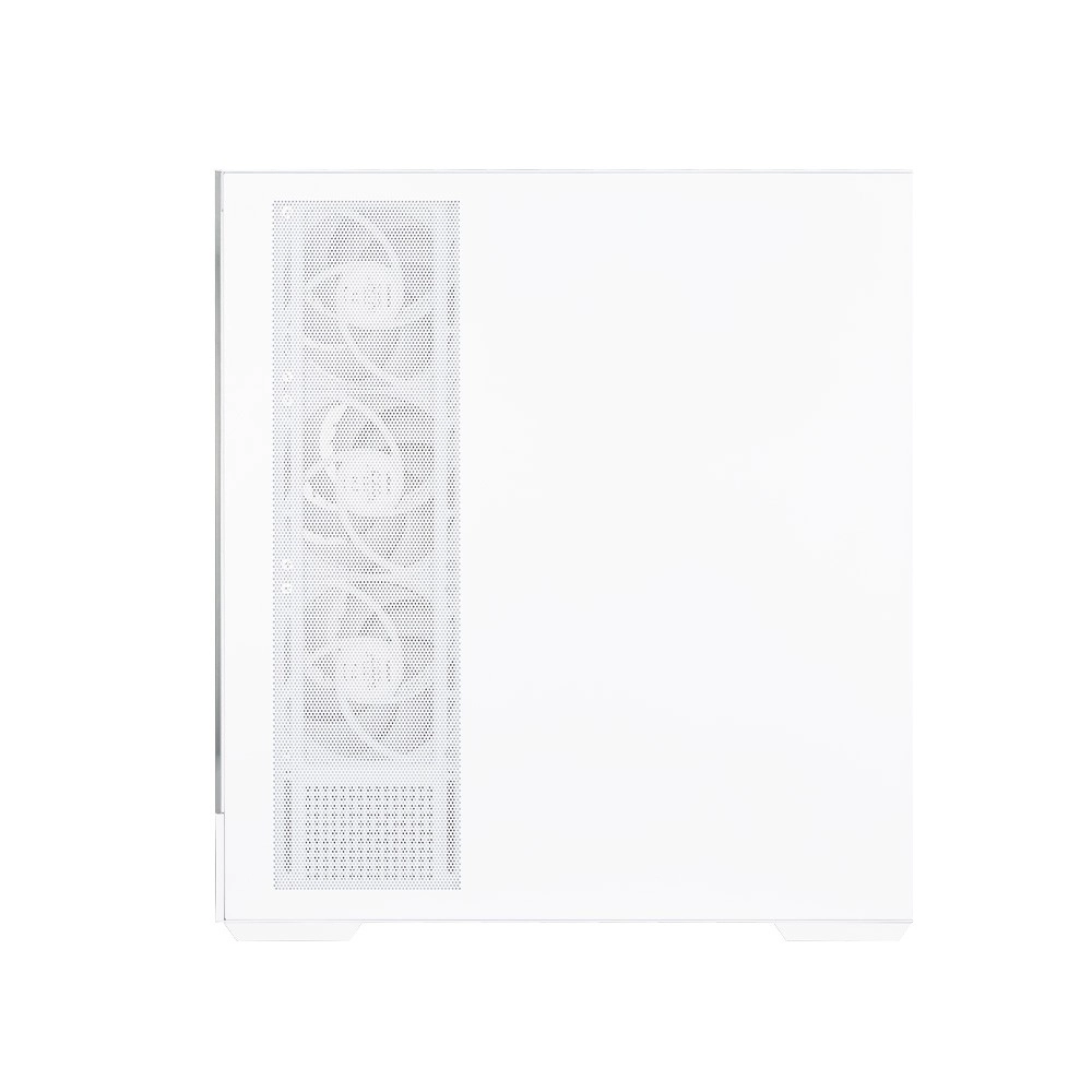 Kabinettet er designet til topklasse køling: sideindtag, optimerede blæserpositioner og aerodynamiske AF120-blade reducerer vibrationer og luftstøj, samtidig med at luftgennemstrømningen maksimeres. Med 34 mm plads til kabelstyring, smarte kabelruter og en let aftagelig sidepanel er både samling og vedligeholdelse hurtig og overskuelig.
