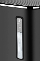Betjening med ét tryk, uden knapper og drejehjul. Baggrundsbelyste LED‑ikoner viser tydeligt den valgte styrke, temperatur og antal kopper for fejlfri tilberedning.