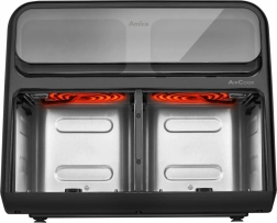 Oplev en hurtigere og sundere måde at lave mad på. Den to-kammer varmluftfriture tilbereder dine favoritter med minimal olie takket være intens cirkulation af varm luft. To uafhængige zoner gør det muligt at bage og “fritere” forskellige råvarer samtidig, og takket være vinduerne har du altid styr på processen uden unødvendigt at åbne skufferne.