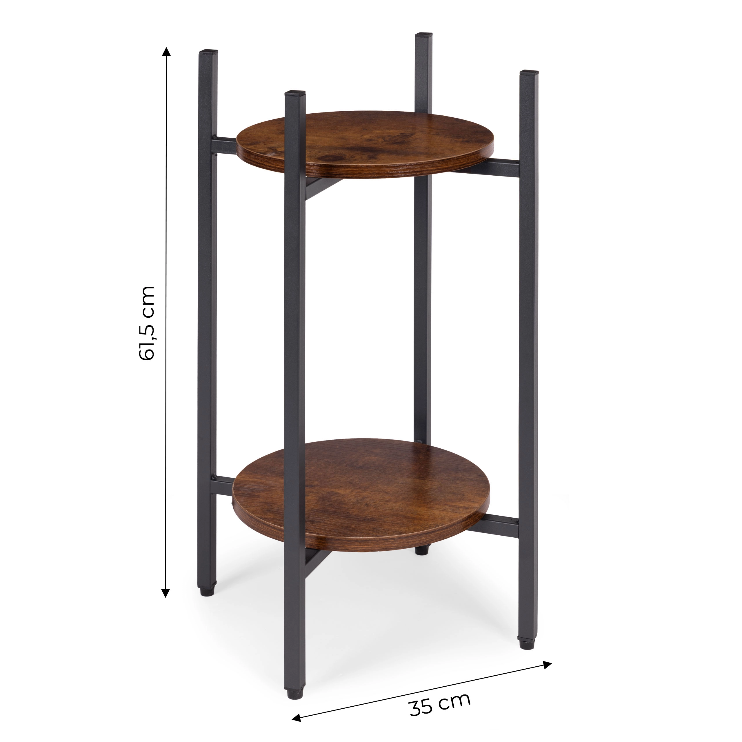 Udstil dine yndlingsblomster, krydderurter eller dekorationer på en to-etagers stander, der bringer et industrielt look til ethvert rum. Takket være de kompakte mål kan den nemt placeres ved sofaen, i gangen, i køkkenet eller på en overdækket terrasse. Det universelle design passer til både moderne og eklektiske interiører og hjælper med at skabe attraktive grønne kompositioner.