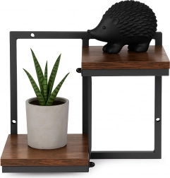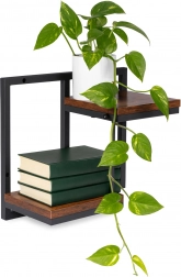 Den sorte stålramme og træhylderne skaber en stilfuld accent, der passer til både moderne og industrielle miljøer. Ideel til krydderurter, sukkulenter og dekorationer.