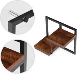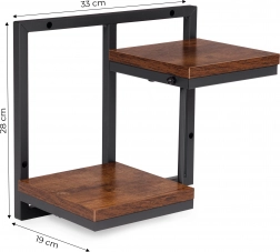 Pift din indretning op med en praktisk og moderne hængende hylde i loft-stil. Den minimalistiske sorte ramme i pulverlakeret stål og to robuste hylder i trædekor skaber et stilfuldt sted til dine planter, bøger eller små dekorationer. De kompakte mål gør den velegnet til stue, køkken og badeværelse.