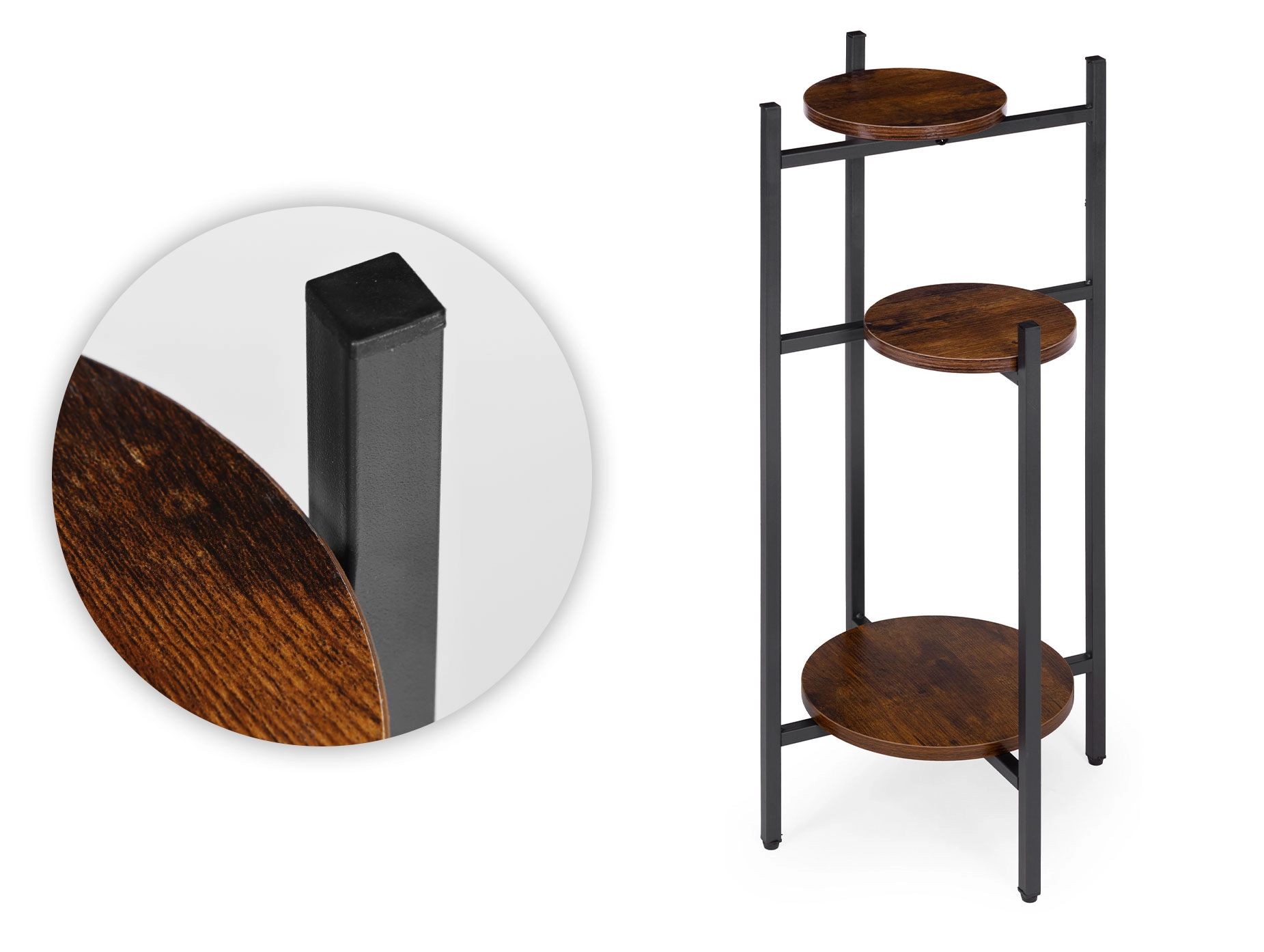 Tre runde hylder i forskellige højder lader dig udstille flere planter uden at optage værdifuldt gulvareal. Ideel til hjørner, ved vinduet og ved siden af sofaen.