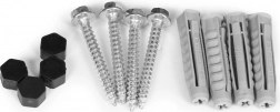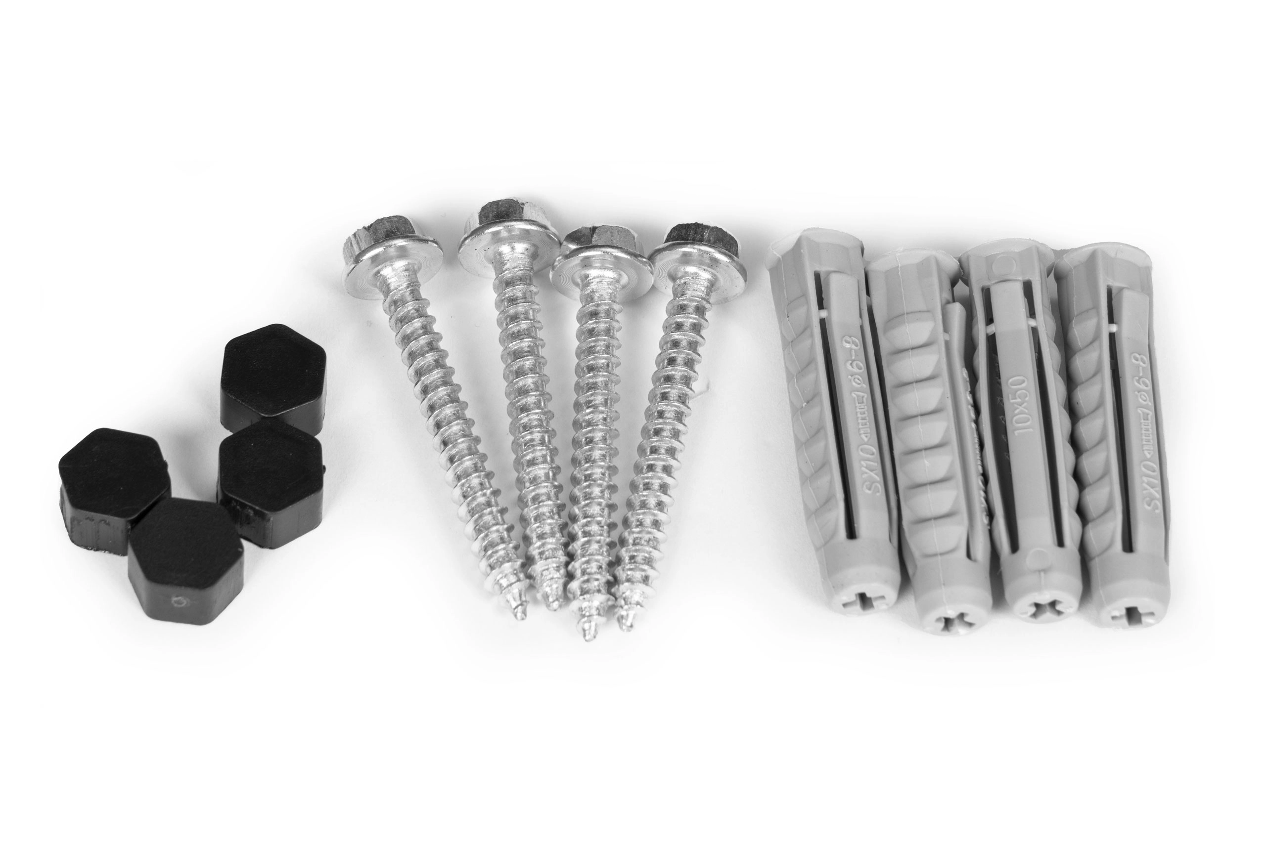 Der medfølger et komplet sæt skruer og rawlplugs til hurtig og sikker fastgørelse på væggen, uden behov for ekstra tilbehør.